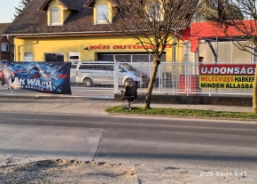 Járdát szűkítő, illegális reklám