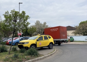 Megállni tilosban parkol egy kisteherautó a Sereg utca elején, akadályozva ezzel a teherforgalmat, napi szinten sok alkalommal közlekednének erre nyerges vontatók, de nem tudnak tőle befordulni az utcába.