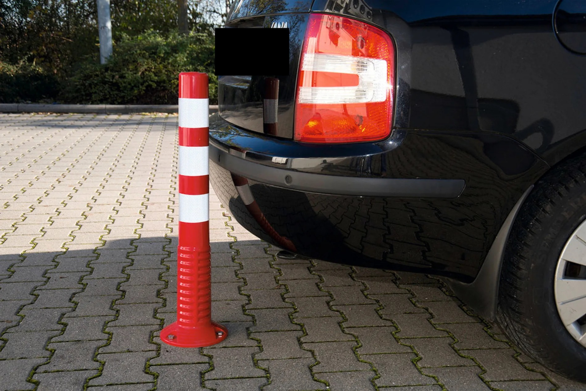 Fizikai akadály hasonlóképpen szűkítené az útpályát, mint a várakozó gépjárművek. Az útcsatlakozásban is veszélyes hely burkolati jel kerül felfestésre.