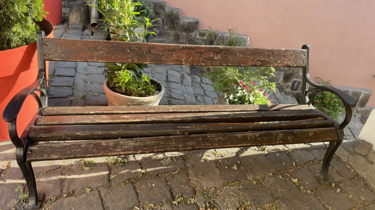 Szentendre főterétől 10 lépésre, romlik le a pad állapota. Jelen állapotában ruházatra, vagy akár kisebb karcolások erejéig a testre is veszélyes.