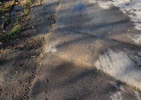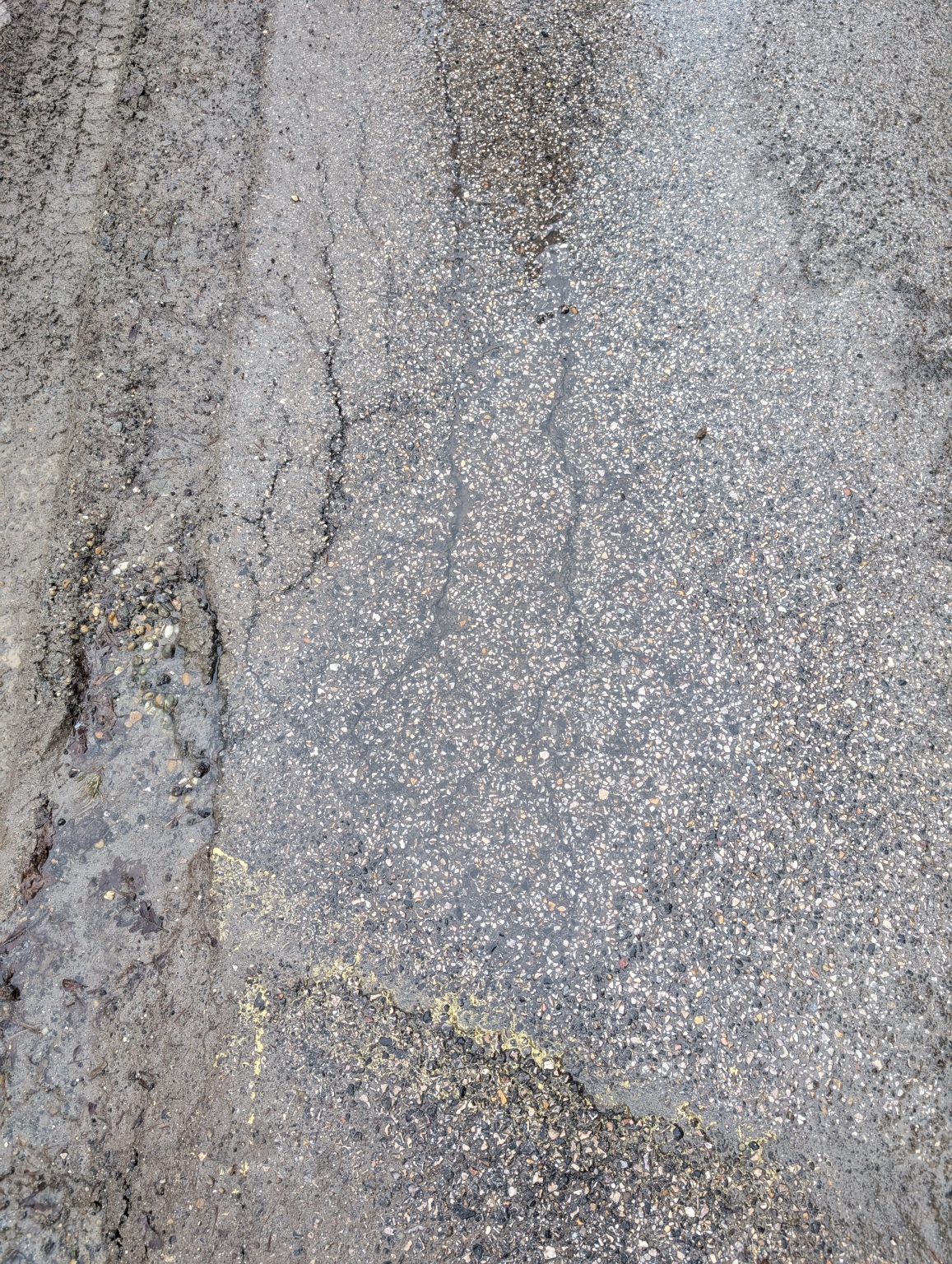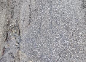 Az útburkolat alól víz szivárog. Szentendre, Csóka utcában.
