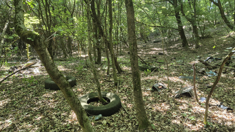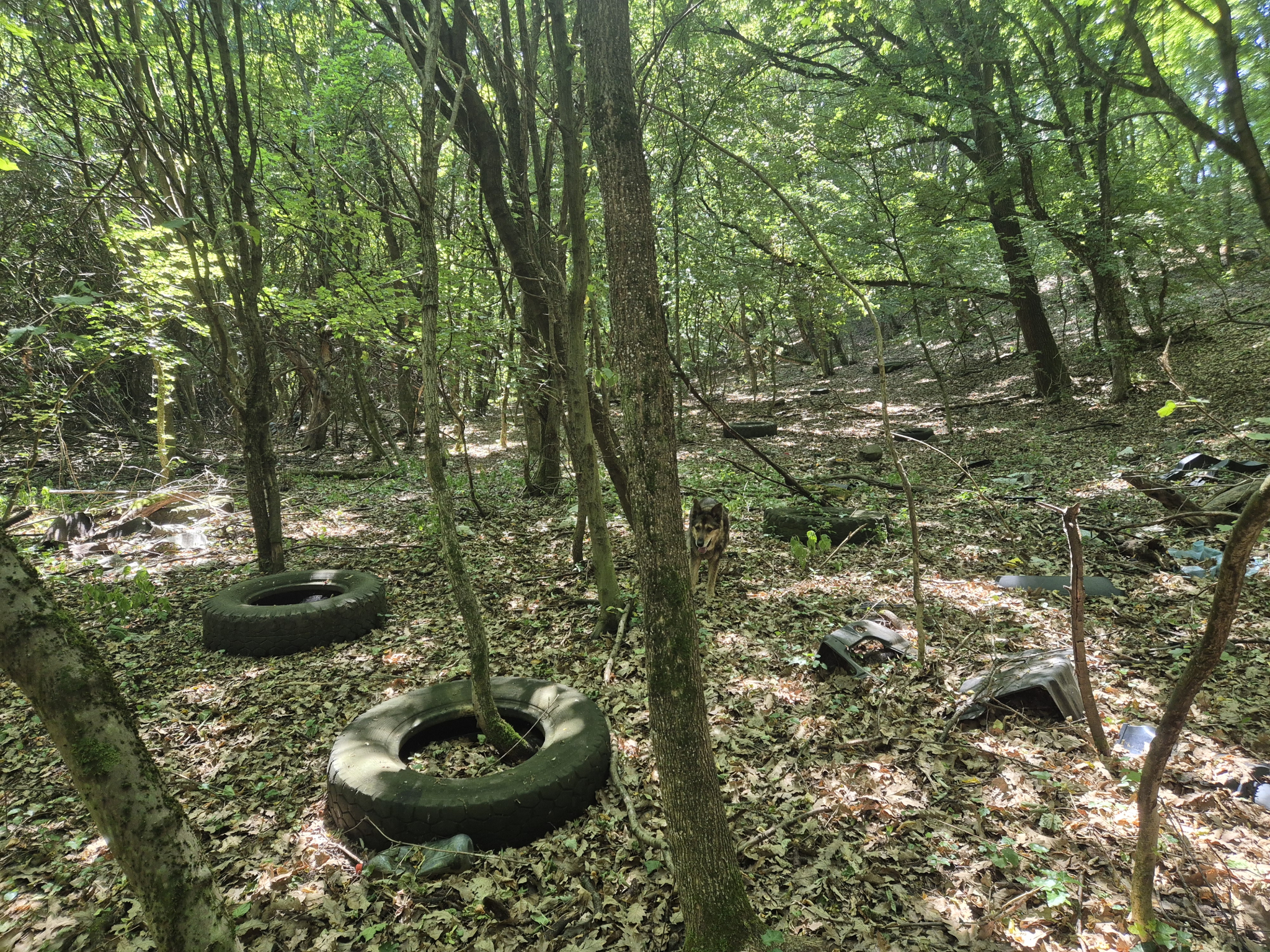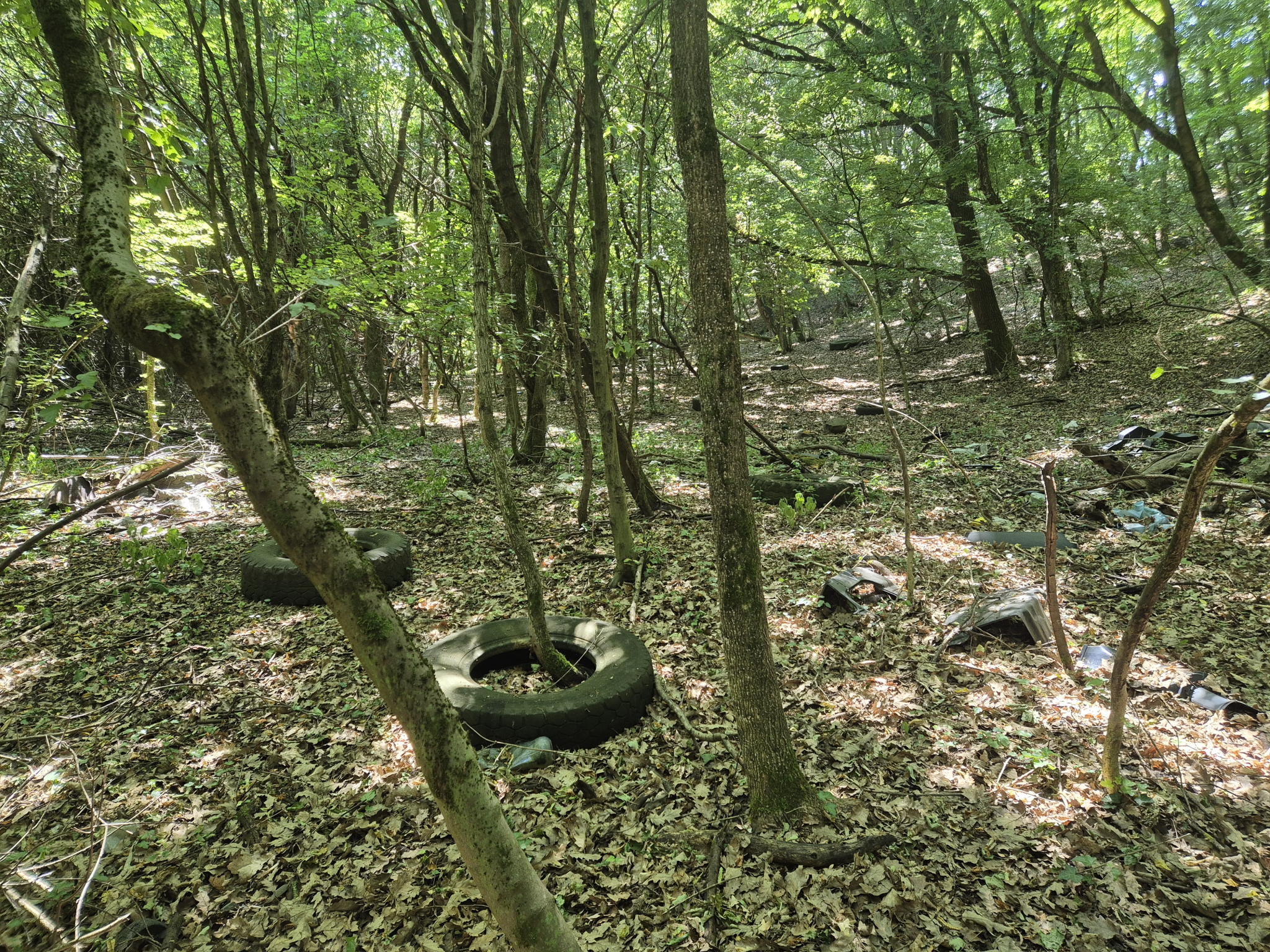 Illegálisan lerakott szemét, leginkább autógumi hever Szentendre határában a Bükkös-patak menti erdőben. Csatolt képeken látszik a pontos koordináta:
