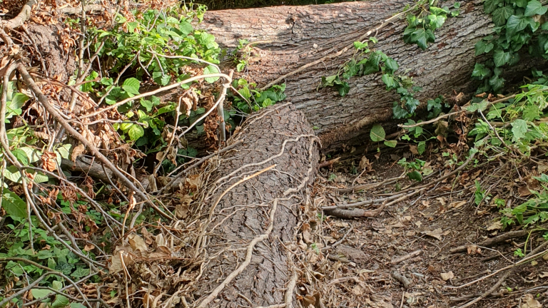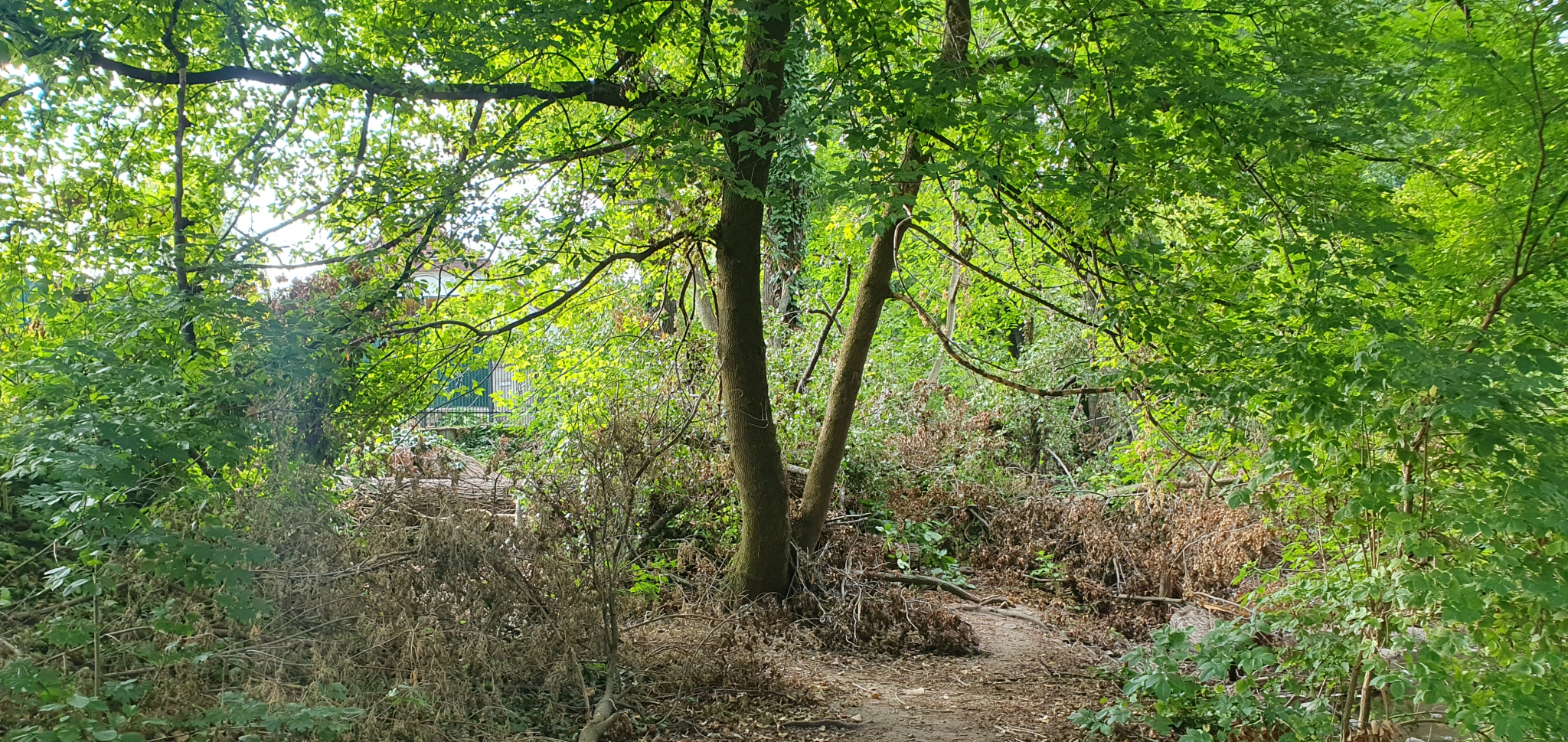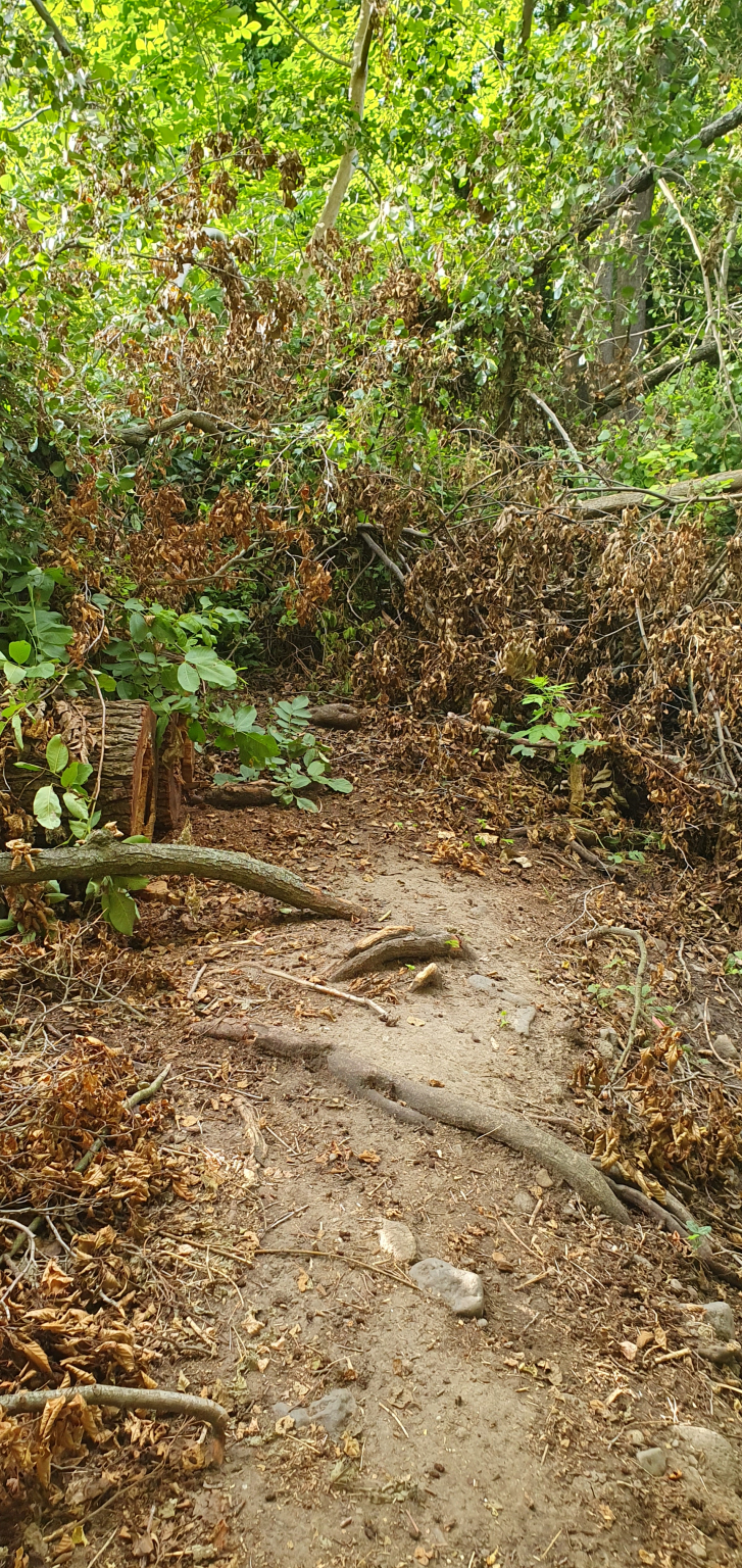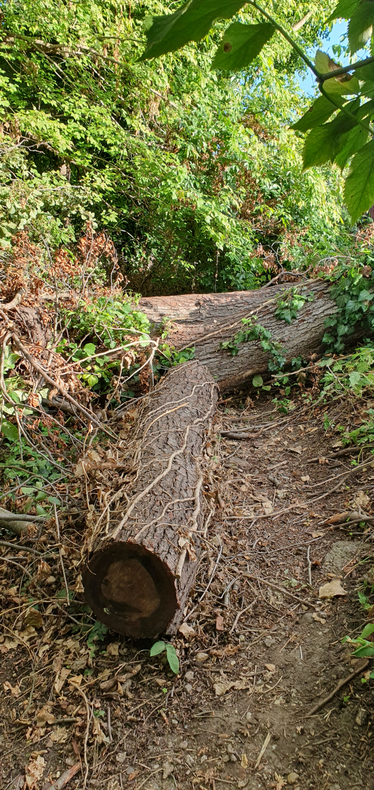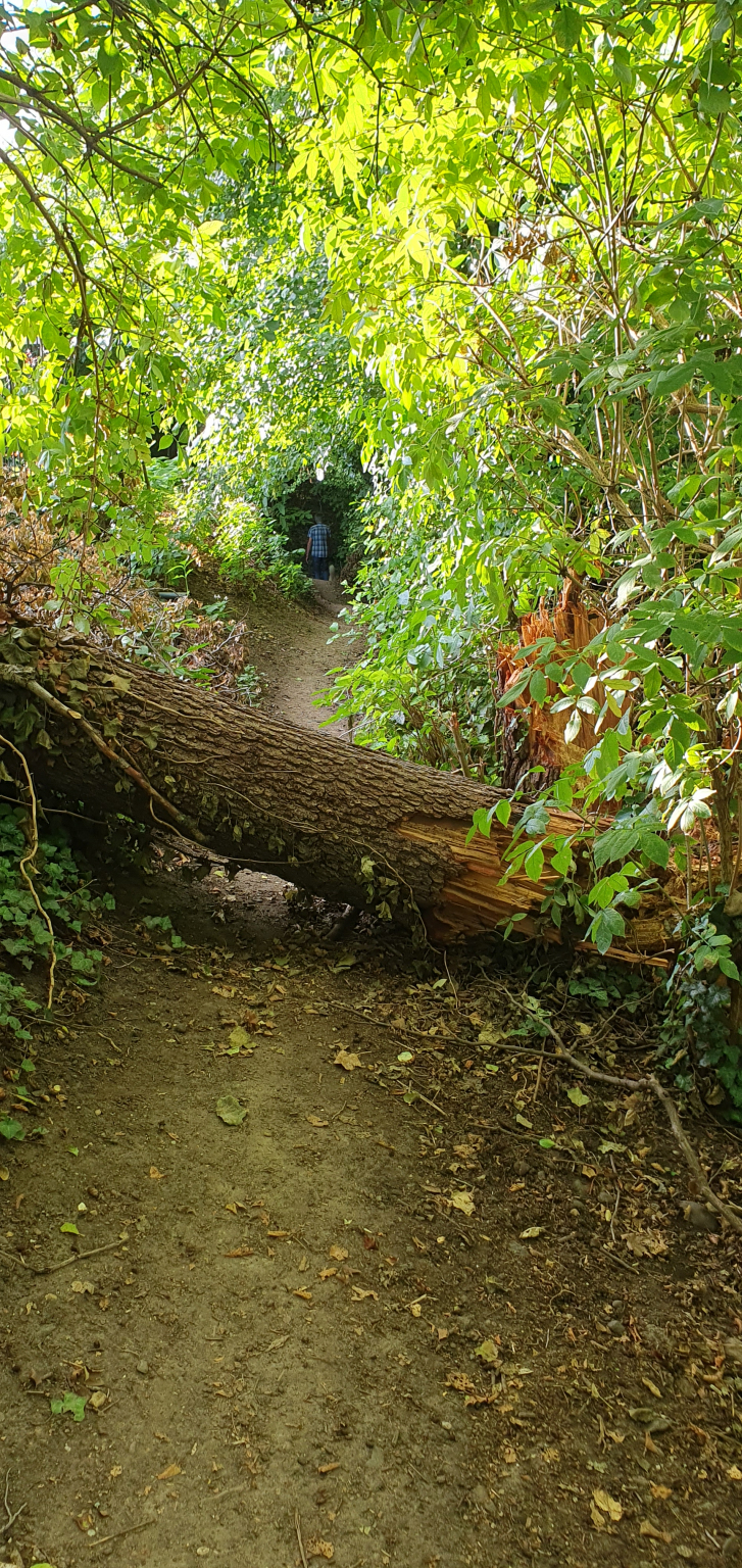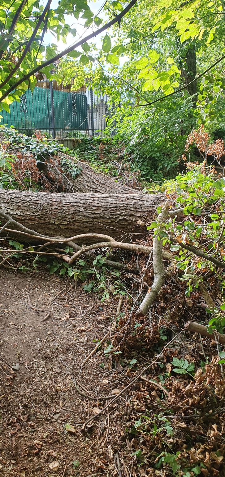 A Mókus hídtól a Vashídig vezető, a patak folyásirány szerinti bal oldalán futó sétányon több hatalmas kifőlt fa miatt hetek óta nem lehet közlekedni.