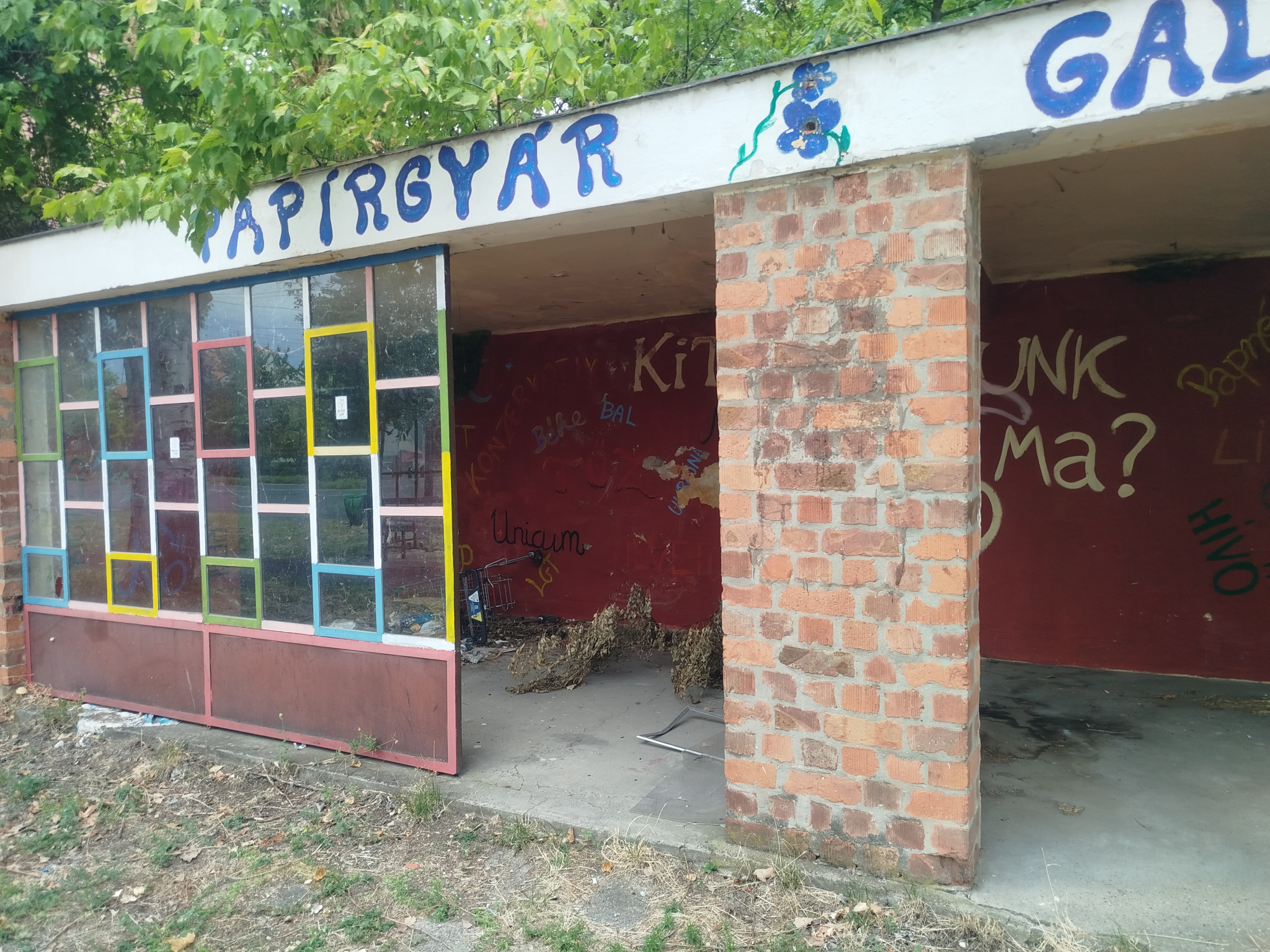 Szentendre Papírgyár buszmegállónál található ez a fedett épület "Papírgyár Galéria" felirattal, ami rendszerint gondozatlan, szeméttel teli, kérjük rendszeres tisztítását vagy a probléma egyéb módon történő megoldását.