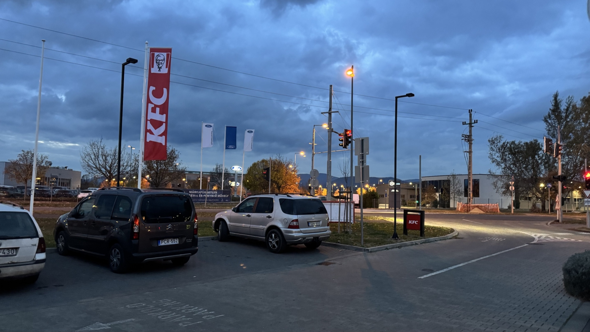 Ma 16:44-kor teljesen sötét volt a KFC parkoló, a környező közvilágítás, pl. ALDI parkoló, vagy közterületi világítás már működött. Intézkedésüket köszönöm szépen!