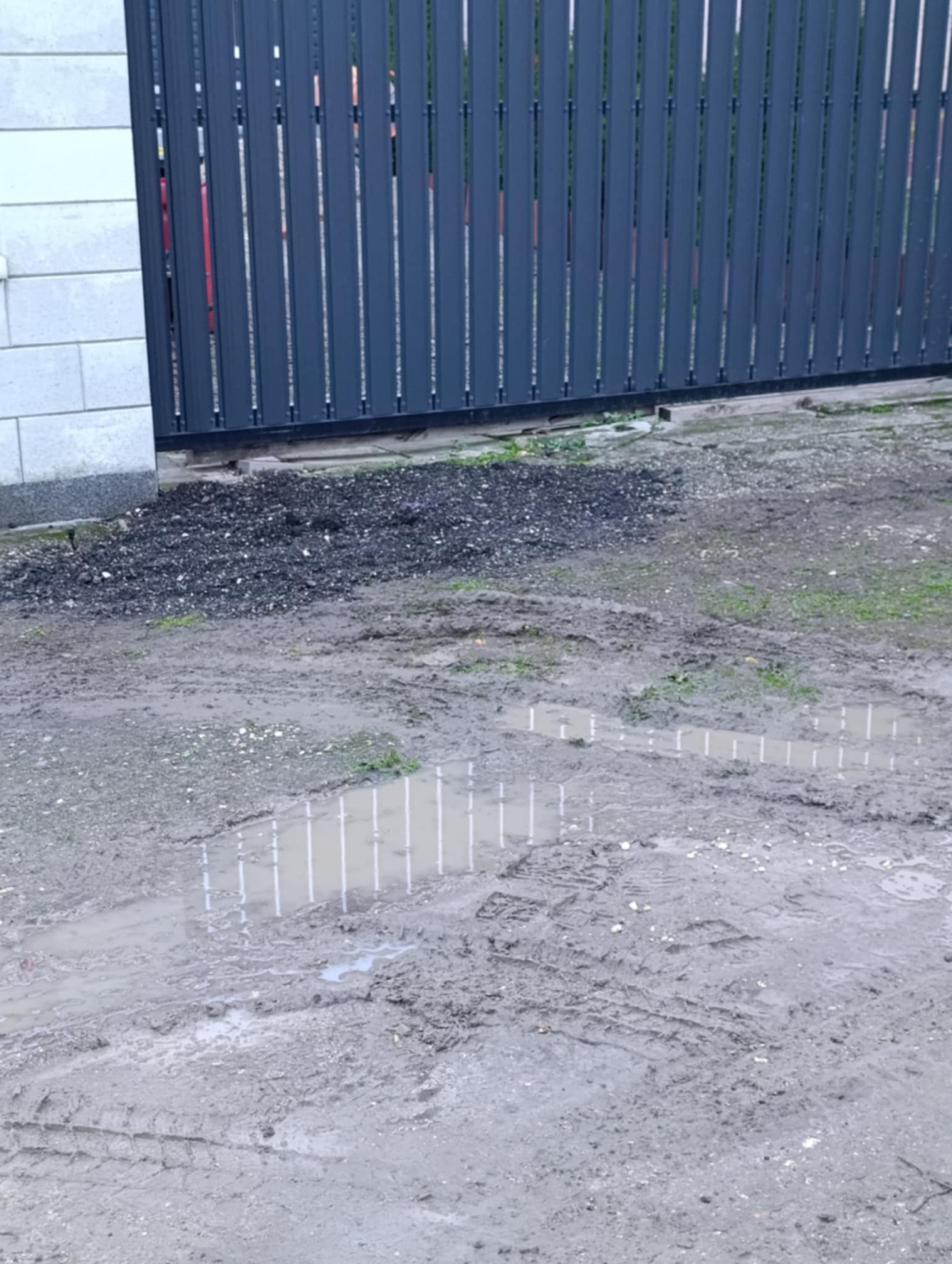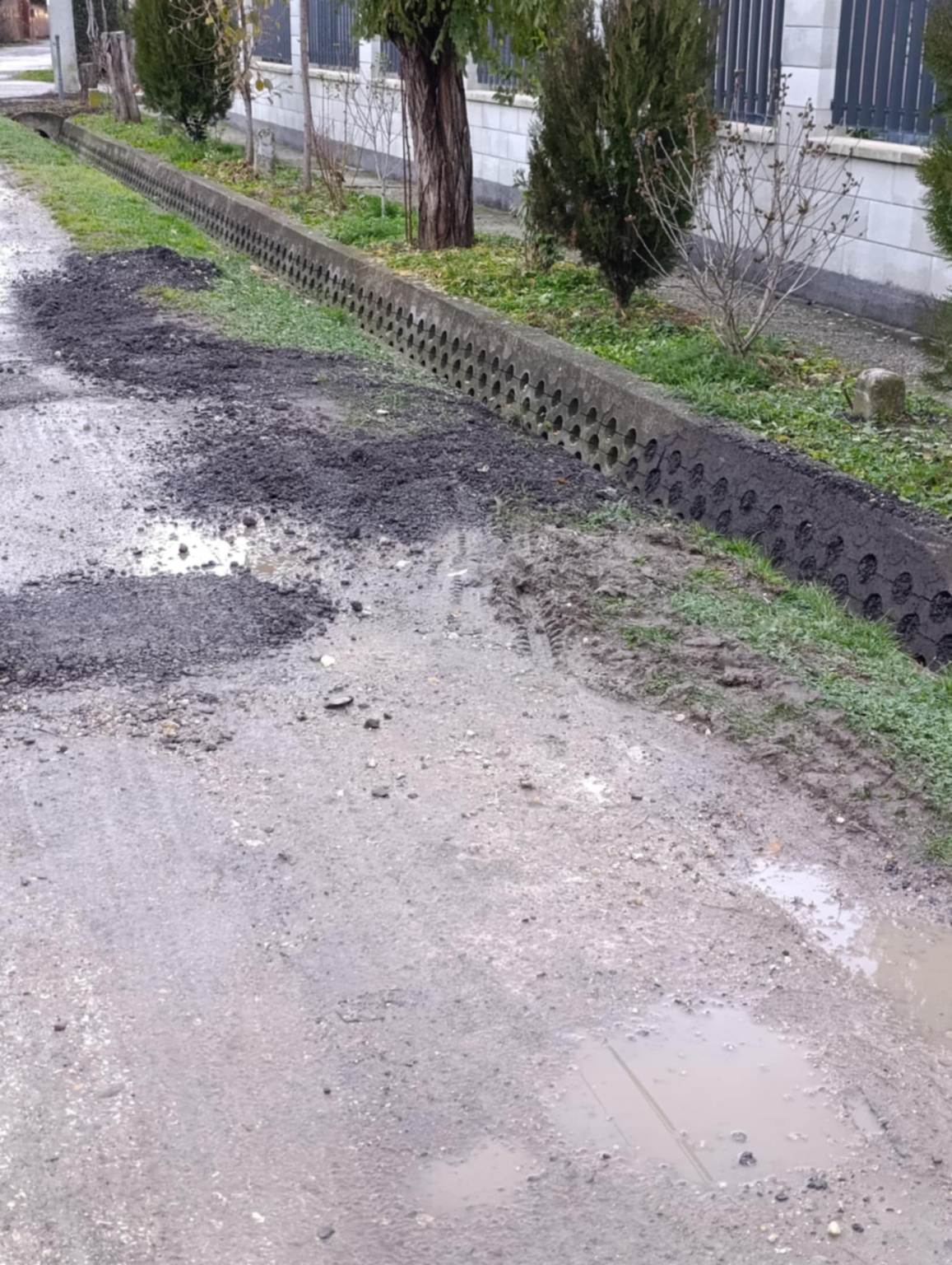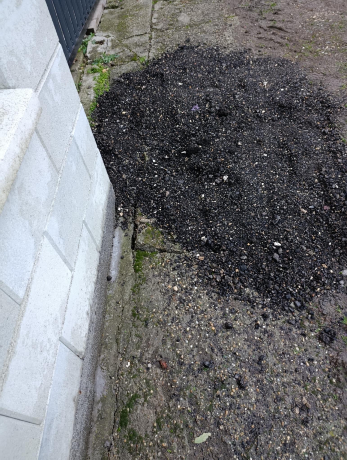 2025.11.25.-én a vízelvezető árokba csúszott Kukásautó, széttörte az ingatlanhoz tartozó járdát, amit ezzel a fekete “aszfalt”nak nevezett porral próbáltak elfedni. Ezzel a probléma nem oldódott meg, sőt inkább még szembe tünőbb lett! Kérjük a járda javítását, rengeteg gyerek és idős közlekedik arra