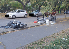 Kàroly utca és Fehérvíz utca talàlkozàsànàl ott felejtett vagy lombtalanítàs óta odahordott zöldhulladék a közterületen.
