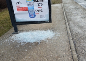 A Bükkös-patak buszmegálló üvege kitört.