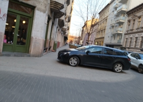Javasolom a veszélyes betonterelő eltávolítását és a parkolóhely kijelölését inkább felfestéssel.