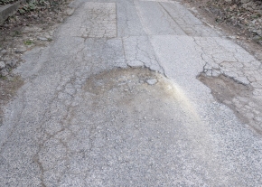 A Budapest-Szentendre kerékpárútba is beletartozó útszakaszon alapból kritikán aluli az útburkolat minősége, de néhol még a borzalmas minőségű aszfalt is hiányzik szinte összefüggő foltokban. Vagy úgyis mondhatnánk, hogy néhol még van útburkolat. Ez évtizedes probléma, pedig összességében is csak egy kb. 150 méteres szakaszról van szó. Legalább a nagyobb lyukakat tömjék be, bár a sima aszfaltburkolás lenne az igazi az egész szakaszon.