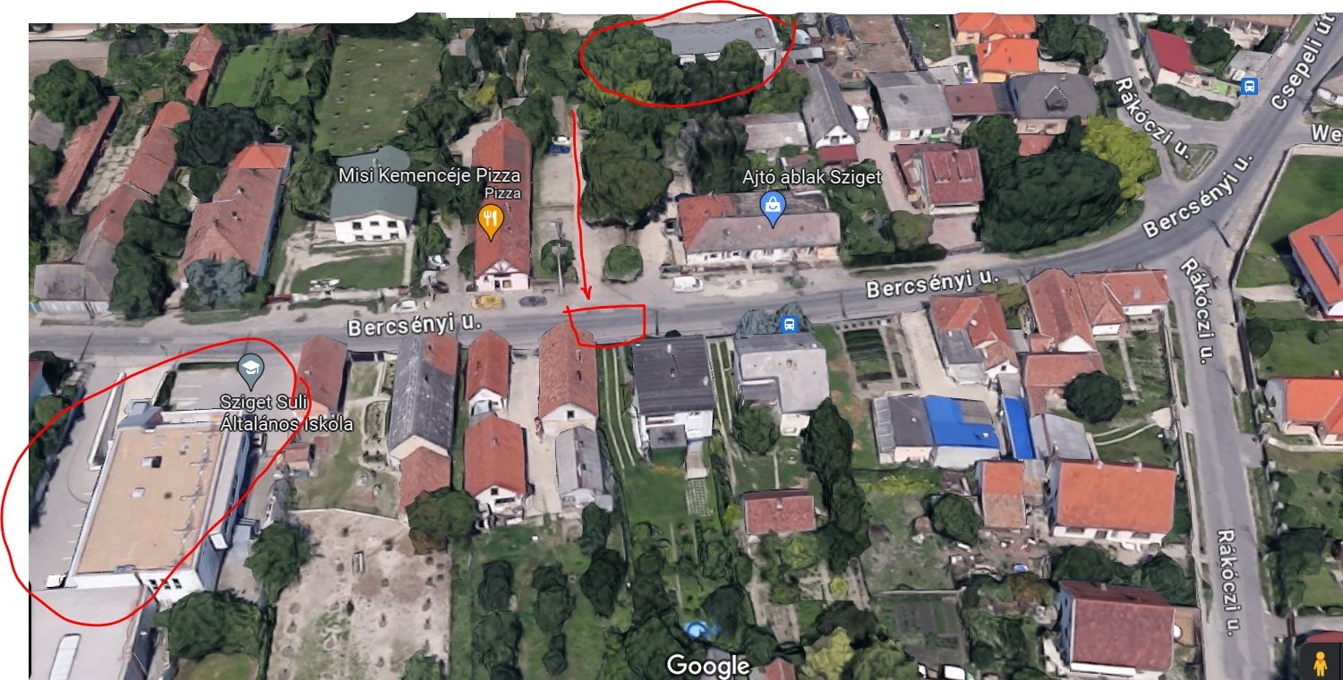 Szigetszentmiklóson, a Bercsényi utca 7. szám alatt működő Sziget Suli Általános Iskola a felső tagozatos diákok számára külön iskolaépületet alakított ki, amelyet idén szeptembertől már el is kezdenek használni a 10-14 éves gyerekek. Az új iskolaépület a Bercsényi út (51101-es sz. út) szemközti oldalán található. Ezen az oldalon járda nincs, a gyerekeknek naponta többször is át kell járniuk a forgalmas úton a két iskolaépület között, továbbá reggel (érkezéskor) és délután hazamenetelkor is. Kérem segítsenek annak elérésében, hogy legalább egy gyalogosátkelő létesülhessen.