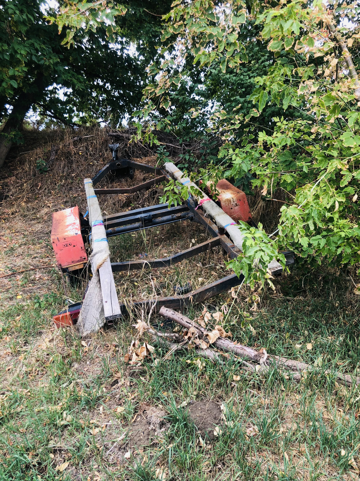 Kérem, szállítsák el a rendszám nélküli utánfutóroncsot.