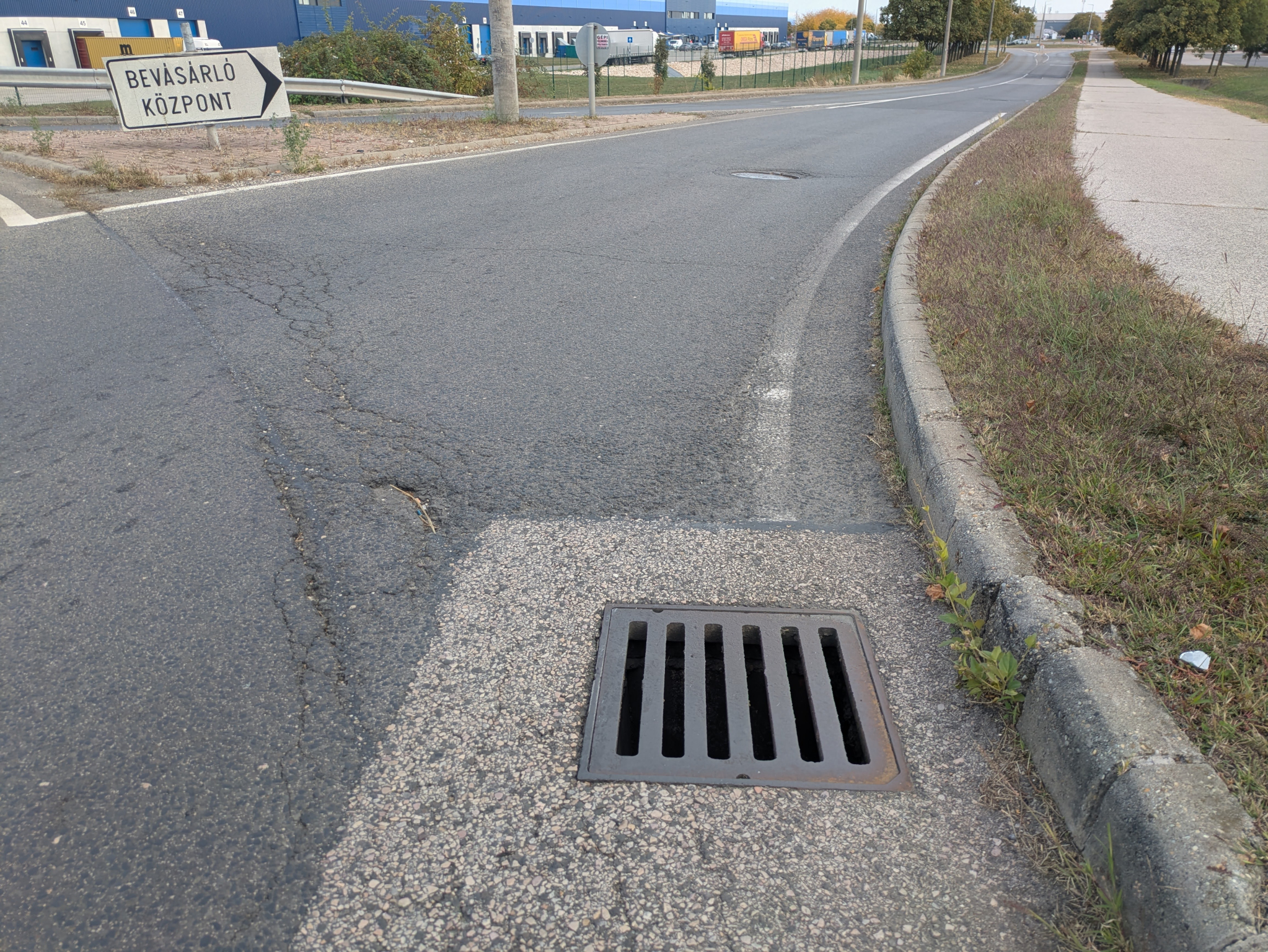 A fényképeken látható víznyelőrácsot a forgalom irányával párhuzamosan helyezték el, mely az egy nyomon haladó járművek számára, különösen 40 mm-nél keskenyebb gumiabronccsal életveszélyes.