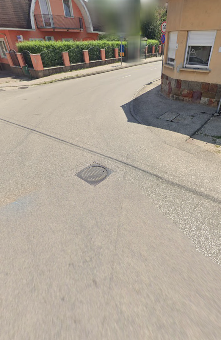 Szigetszentmiklós, Szilágyi L. u. és Árpád u. kereszteződés. A nemrég történt átalakítást követően a főútvonal kanyarodóvá vált a Szilágyi utcáról az Árpád utca irányába. A járda a Szilágyi utcán keresztezi az Árpád utcát, viszont se kijelölt gyalogátkelőhely, sem egyéb figyelemfelhívó eszköz nem került kihelyezésre a gyalogos forgalom miatt.