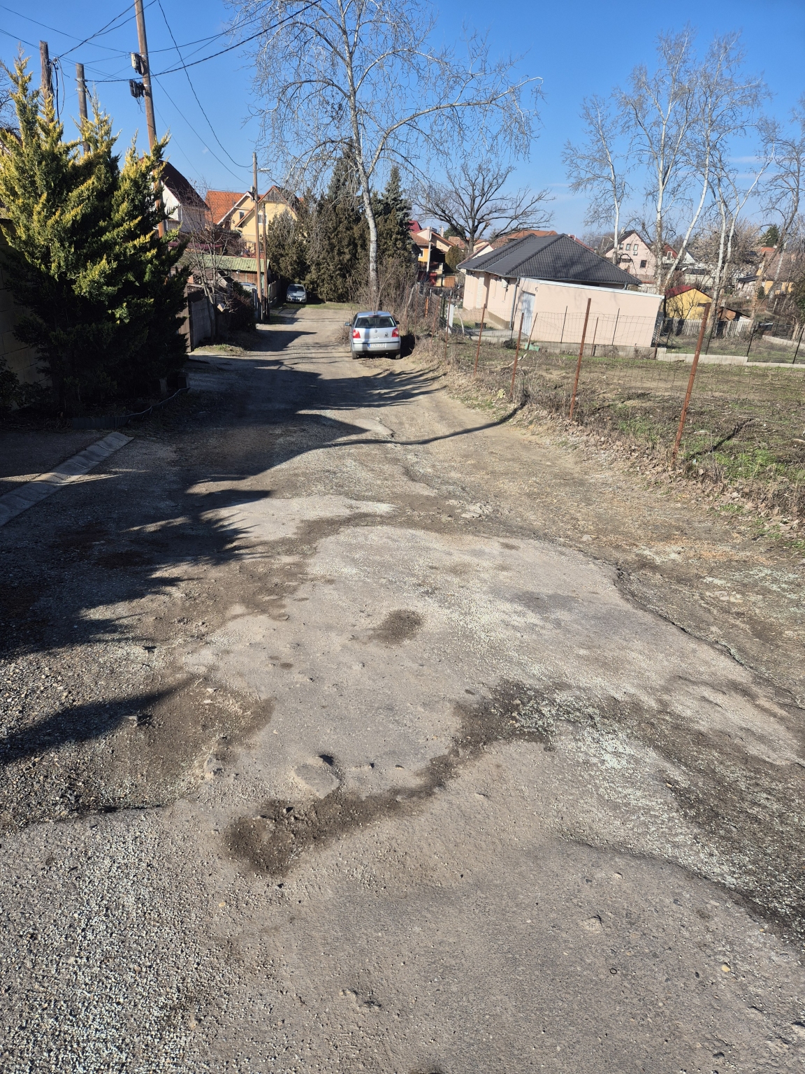A Borsos Károly utcában idén is megjelentek a holdkráter méretű kátyúk. Ezek az utca Fás utca felőli végétől egészen a Fűzfa közig tartanak. Ezúton szeretném kérni az illetékesek szíves intézkedését a probléma elhárítása kapcsán, különös tekintettel a Borsos Károly utca azon helyein tapasztalható kátyúk megszüntetésére vonatkozóan, amelyek a Fás utcai "torkolattól" távolabb esnek. Egy halk alkérdésként felvetném azt is, hogy a Borsos Károly utca és a Fűzfa köz aszfaltozása tervben van-e mondjuk 2027.12.31-el bezárólag? Állampolgárként, helyi lakosként milyen lehetőségem volnának az aszfaltozási helyzet előremozdítása kapcsán?