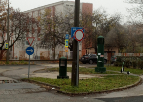 Járdasziget és táblák állapota
