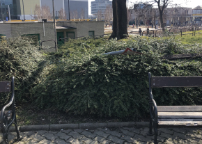 Egy eldobott tábla van a bokron