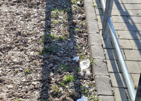 Eldobált szemét az utasváró mögött