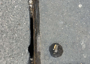 Kátyús, felgyűrődött aszfal a Tavasz utcában