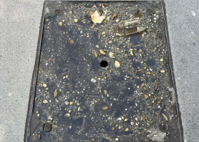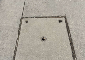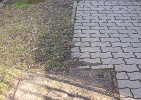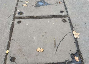 Balesetveszélyes kátyú a járdán