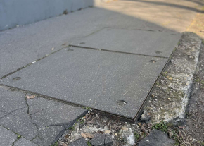 Járdán lévő gázközmű fedél környezete megsüllyedt
