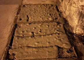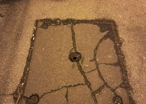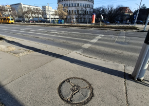 Rossz állapotú fedlap a járda közepén