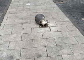 Térkövel kirakott őttest össze-vissza töredezett