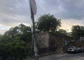 Az újpesti ferde oszlop a park járdájában. MIÉRT??