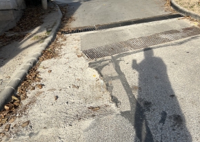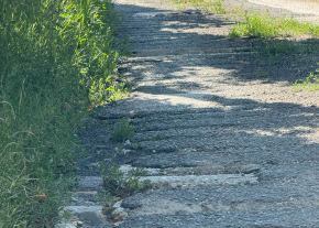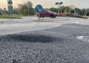 Hiányzó aszfalt, gödör, guruló kavicsok