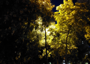 A lámpa fényét kitakarják a fák