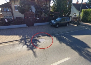 Úttestből kiemelkedő aknafedő és megsüllyedt esővízgyűjtő