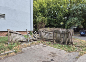 Parkoló melletti kerítés kidőlt