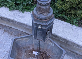 Játszótéren lévő törött felszerelés, törött ivókút