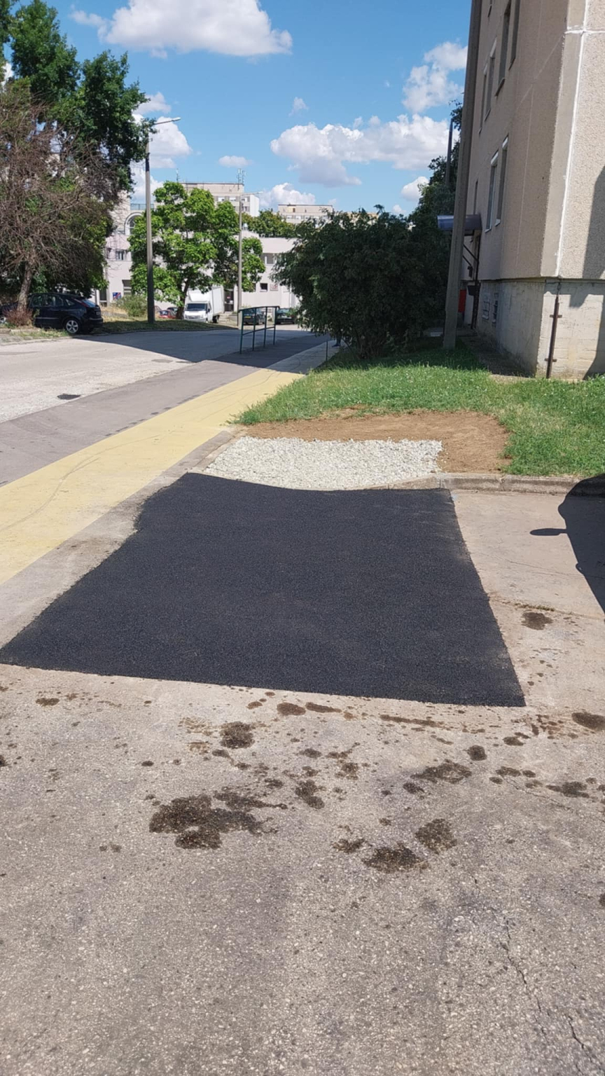 Úgy döntöttem hogy nagykorúvá válása alkalmából bejelenteném ezt a hatalmas gödröt ami esőzésekkor megkeseríti a lakók parkolását, ugyanis a járda is befele lejt, a gödör is vagy 12-15 centi mély, így nagy esőzéskor ott kb 15-18 centi magas víz áll. Horst Fuchs szavaival éljek:és ez még mind semmi...ugyanis a víz nem tud a járda miatt kifele folyni, ezért a parkolóba befele megáll, a fele parkolót 2-5 centi magas vízzel megtöltve, így Jézusnak kelle lenni hogy ne fojjon be a cipőbe a víz be vagy kiszálláskor.
