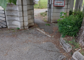 A Vámosi úti temető bejárata évek óta balesetveszélyes. Jó lenne, ha még idén, Mindenszentek előtt kijavítanák. Sok idős ember botorkál a sötétben, kifejezetten botlásveszélyes mindkét bejárat.