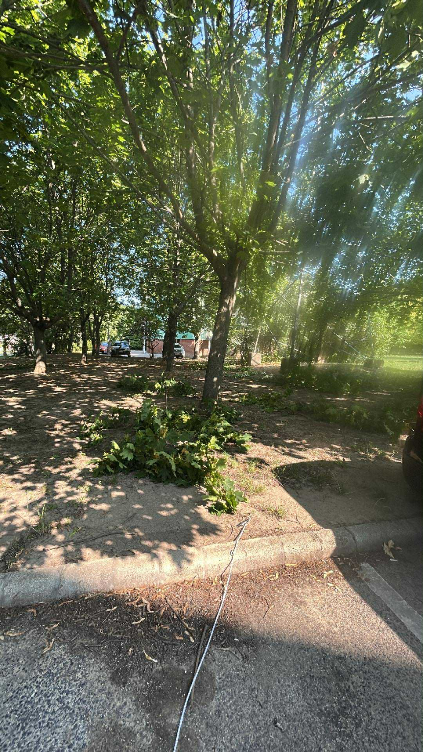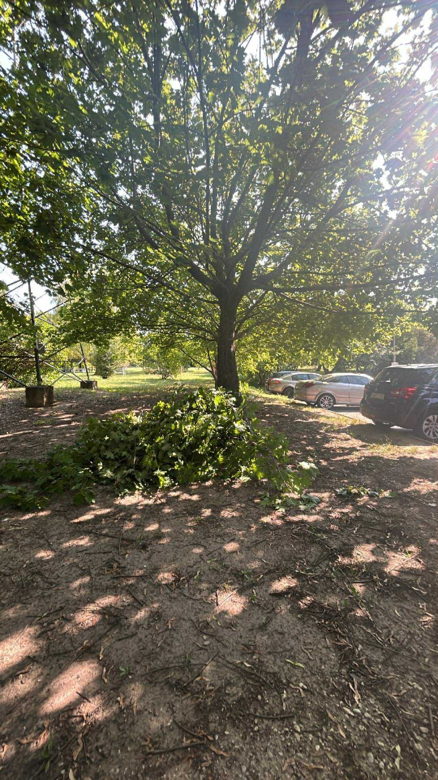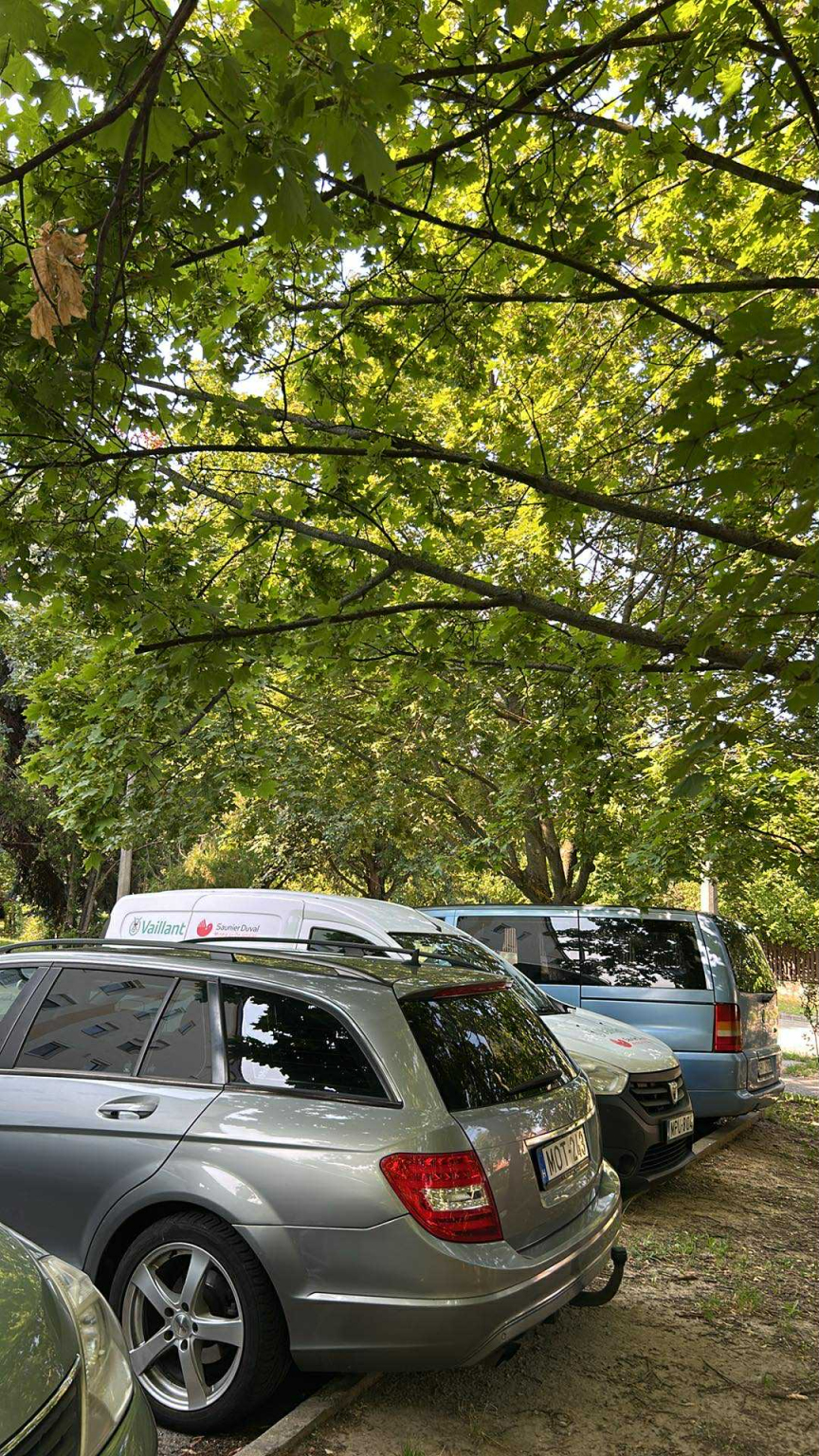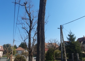 Kiegészítés: vannak még további ágak, amik a parkoló fölé lógnak be, de ezeknek az ágai túl vastagok és nem tudják már levágni, így ezt is kérik elvégezni.