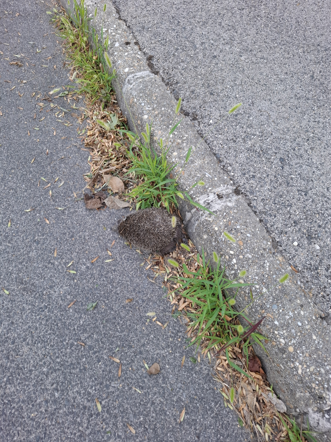 Lakott területen belül, családiházak közötti részen, az út szélén egy halott sünt találtunk. A nagy meleg miatt hamarosan bomlásnak indul, nem szeretném a házunk mellett végignézni, ahogy lebomlik.