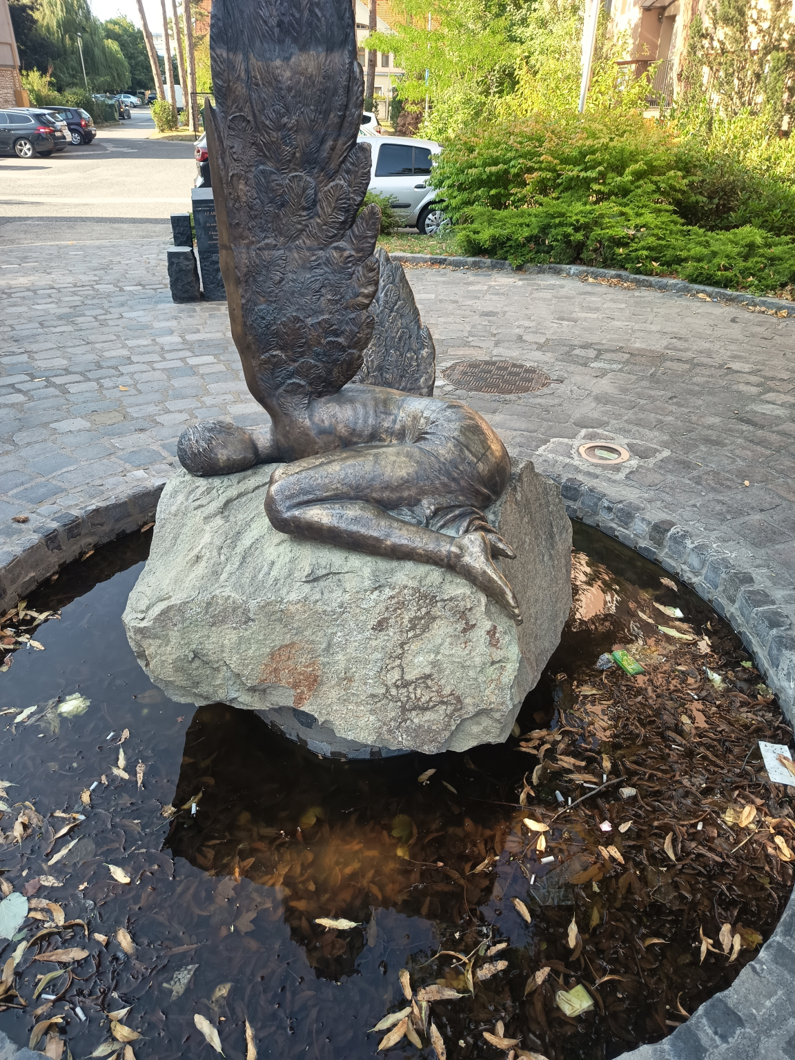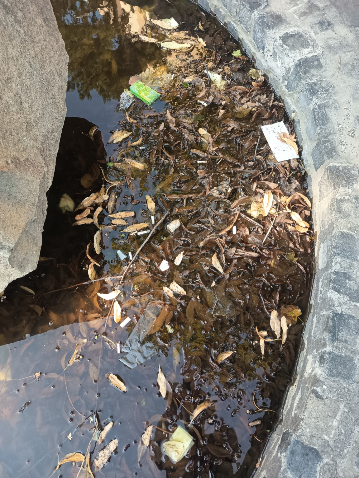 Méltatlan kinézetű az emlékmű körüli vízfelület.