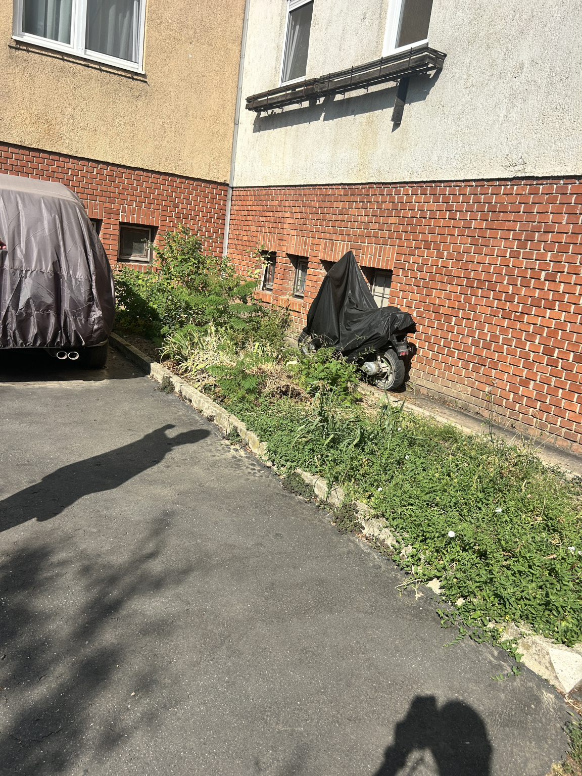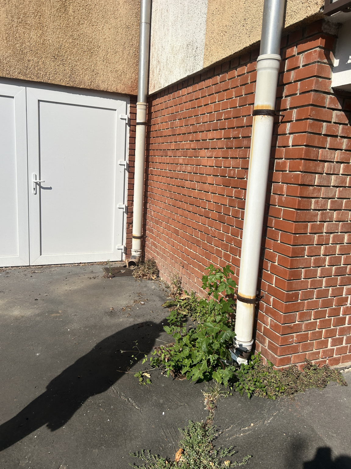 Kalmár tér 14 Tarsashaz mögötti csapadékelvezetőből nől ki a tölgyfa. Illetve nagyon rendezetlen a zöld kert sziget ami közterület