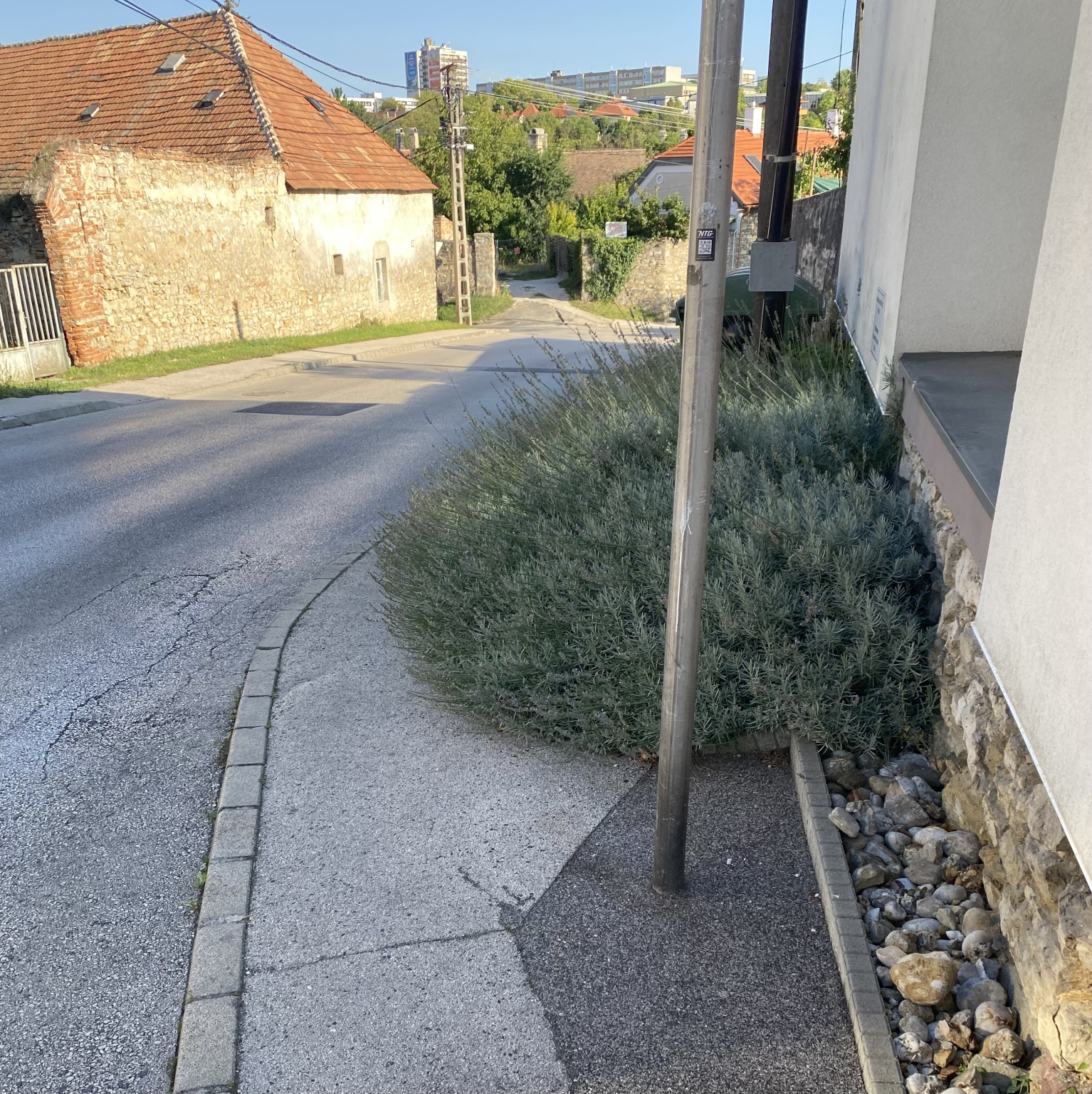 A Veszprém Pajta utca 19. melletti kis zöld sziget elfajult, elfoglalja szinte az egész járdát. Tekintettel az út forgalmas voltára, a kikerülése veszélyes.