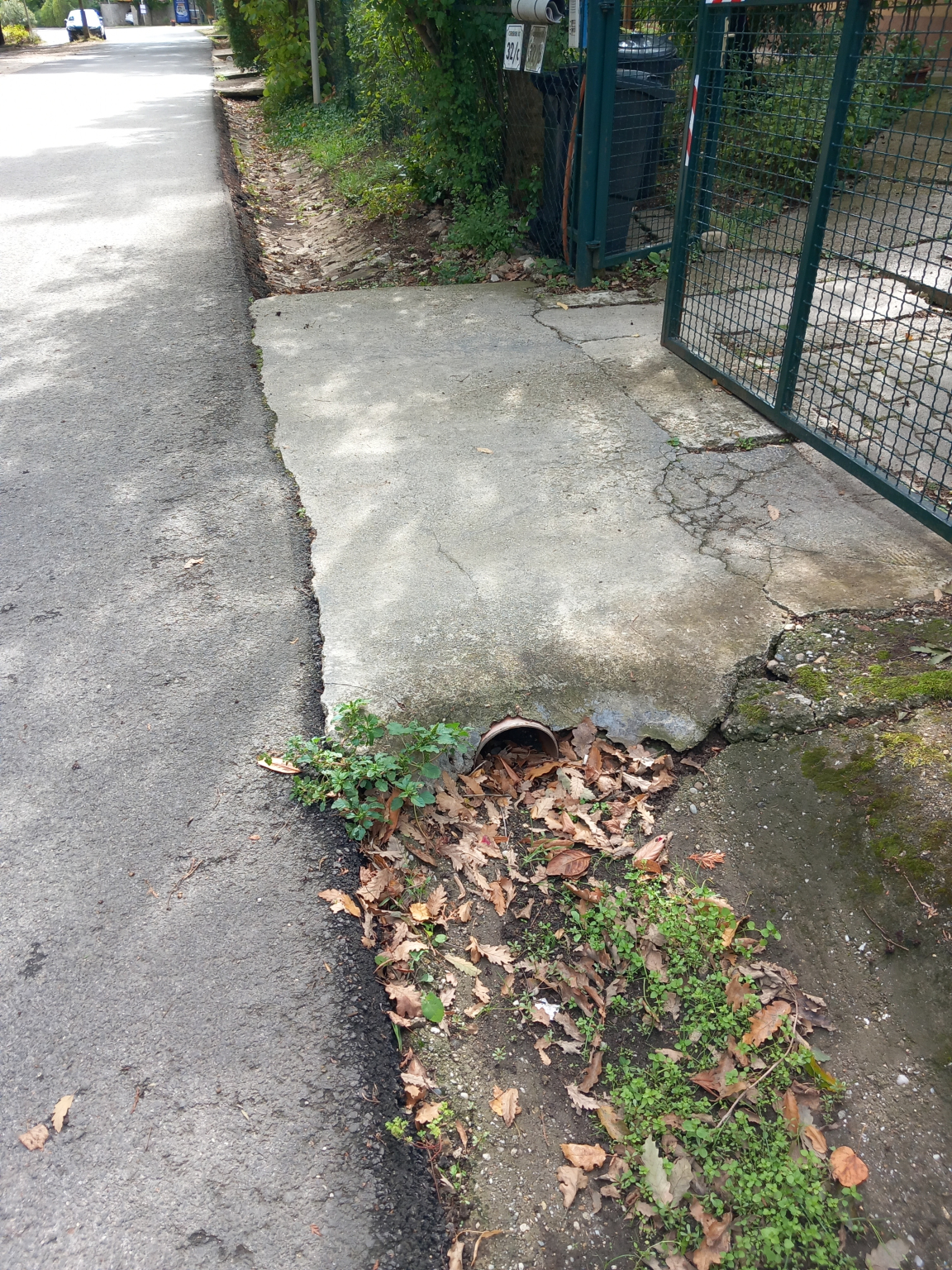 A vízelvezető csatorna eldugult, ezért eső esetén nem tudja elvezetni a vizet, hanem felgyülemlik a víz, és átfolyik az úttesten.