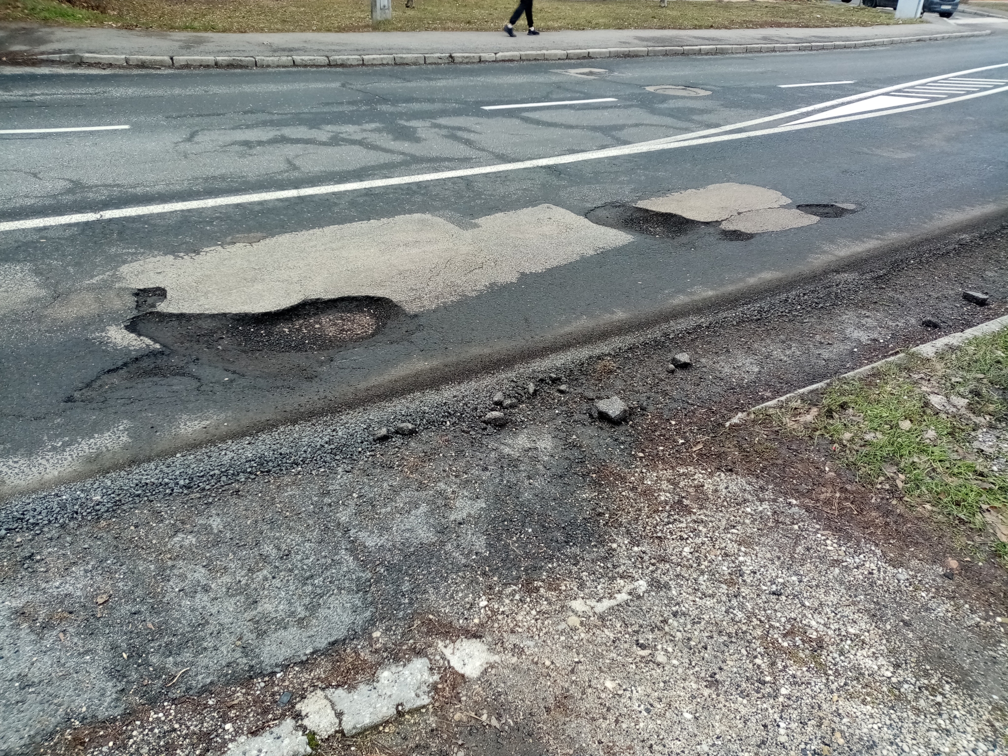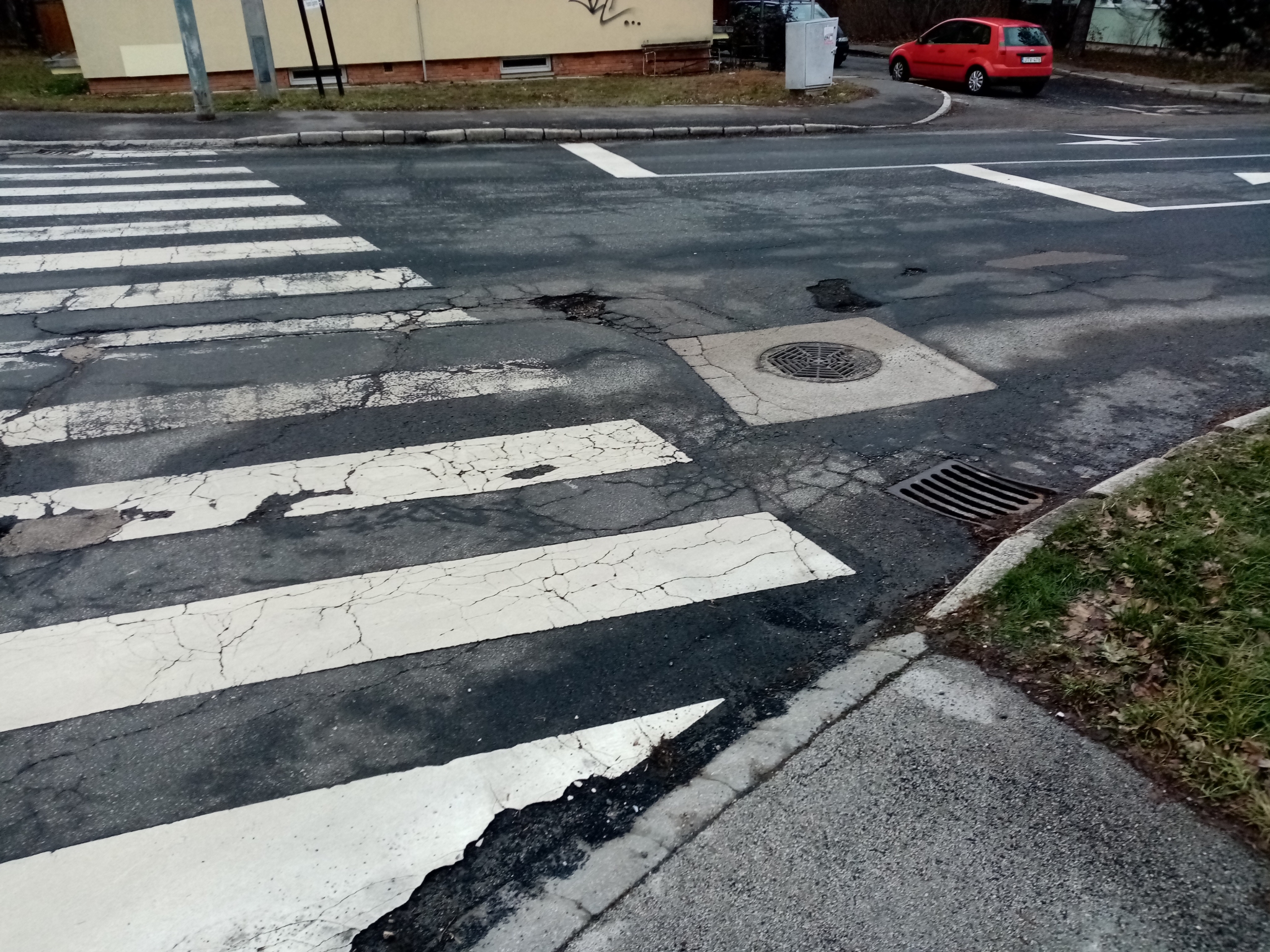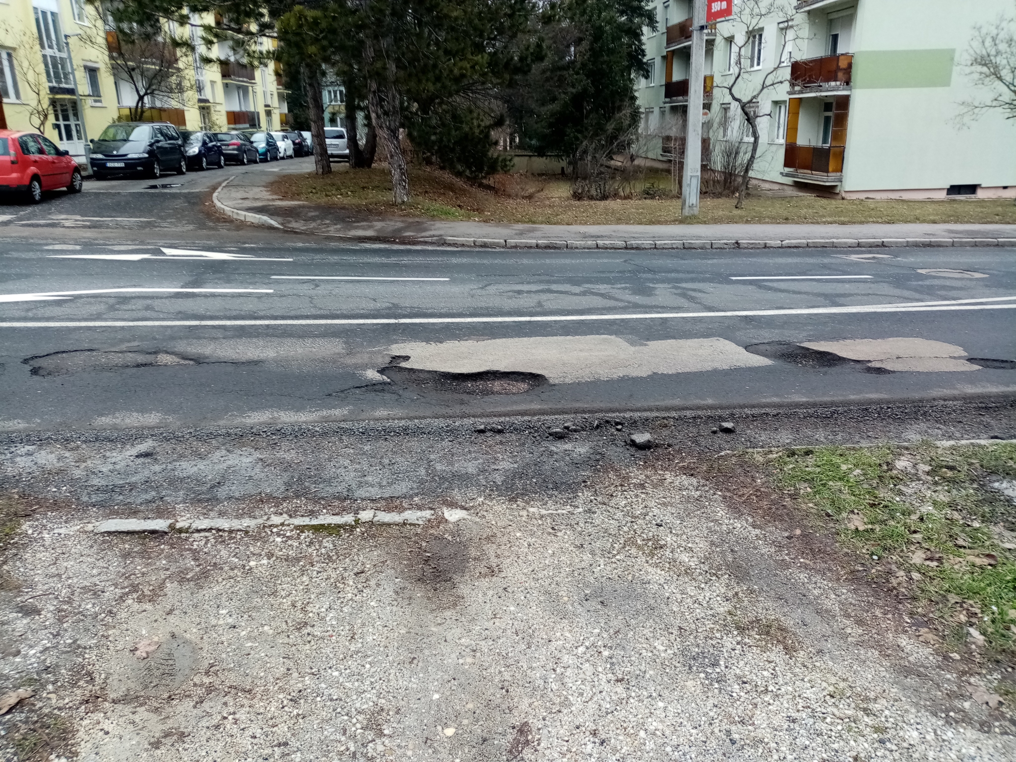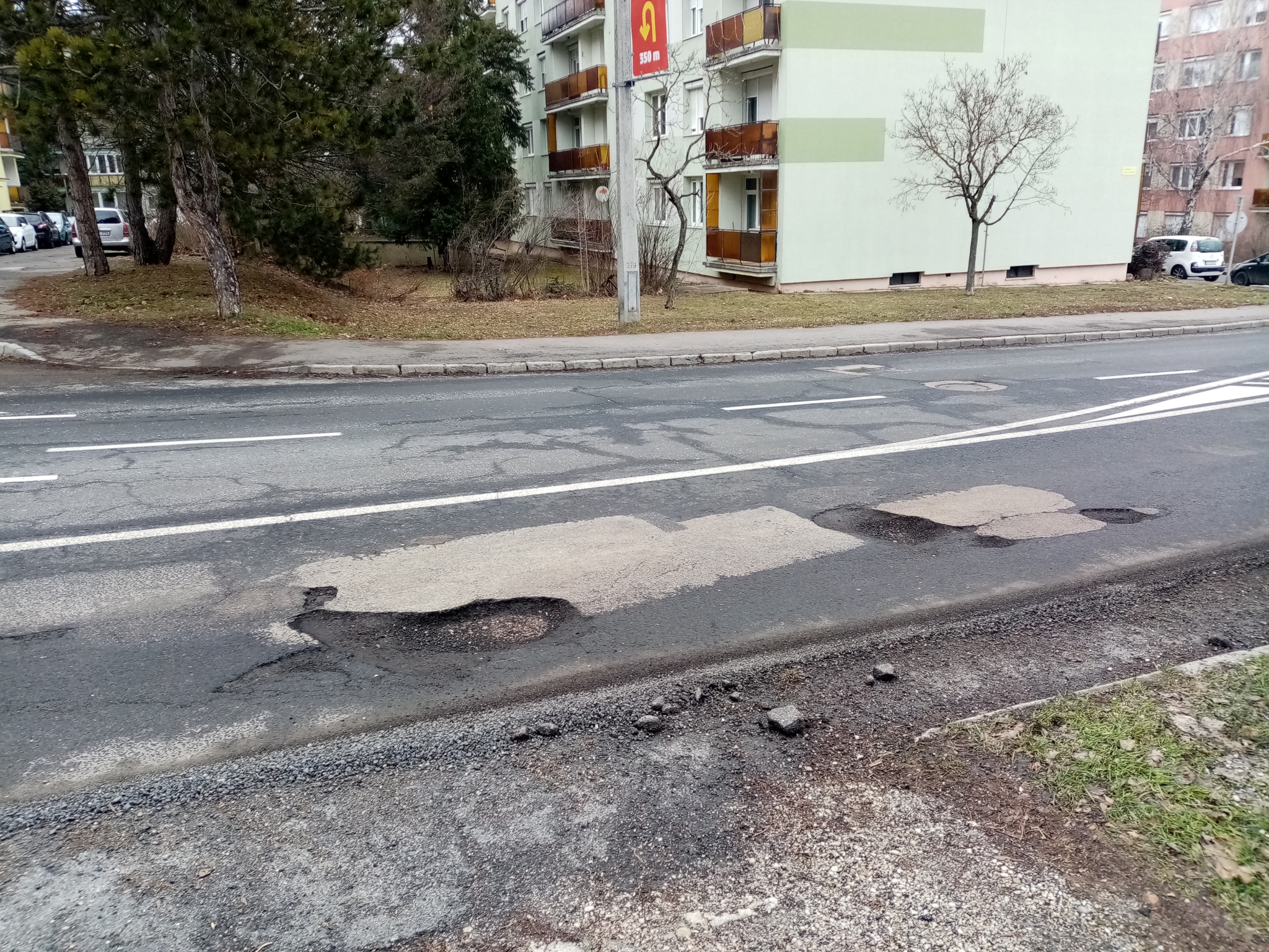Veszprémben a Stadion utca 5. szám előtt az úttesten több egymást követő kátyú van, némelyik nagyon mély.
