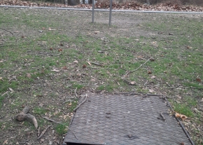 Egy csatorna fedele elkezdett beszakadni a járda közepén. Cserére szorul.