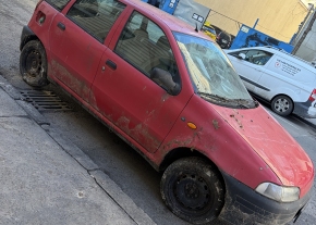 A Nap utca előtt egy elhagyott roncsautó - rendszámtáblák nélkül - várja, hogy végre valaki elszállítsa.
