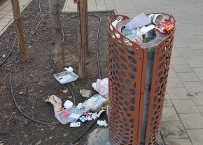 Pannon Egyetem lévő O épületnél lévő közterületen lévő kukáknál a szemét oda vannak dobva.A képen jól látható.Kérem tegyenek valamit.Köszönöm.