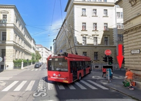 Az Eötvös Károly Megyei Könyvtárnál lévő kerékpáros átkelőnél kidöntötték az elsőbbség adást jelző táblát.