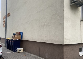 Veszprémben a Rózsa és Cholnoky Jenő utcák kereszteződésében lévő körforgalomnak az észak-nyugati, a társasház felőli oldaláról eltűnt a kihelyezett szemetes, csak a tartó oszlopa maradt meg, pótlása szükséges.