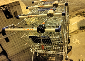 Tesco bevásárlókocsi-karaván a Tábornok utcában