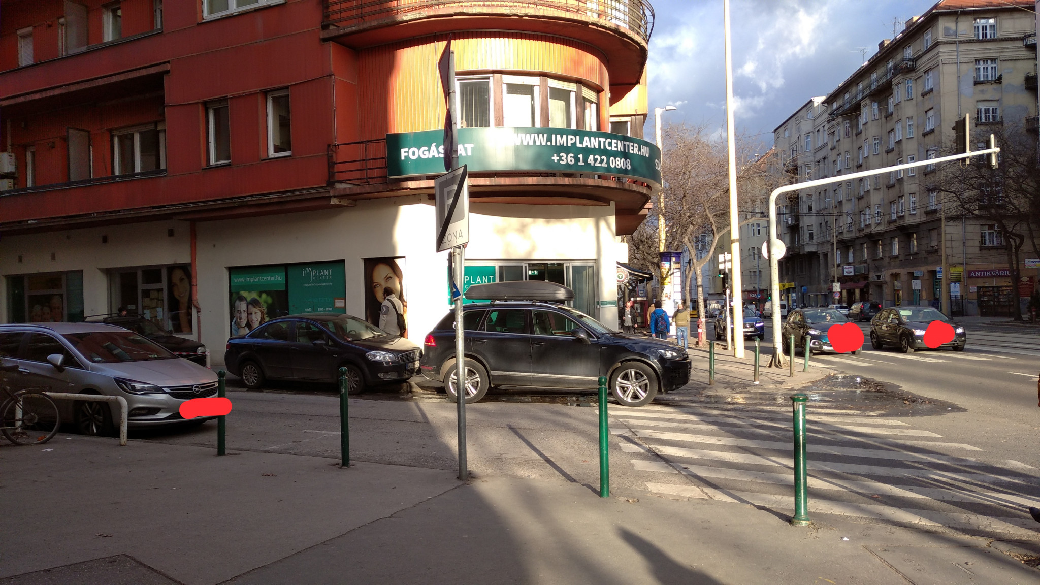 Jelenleg még olyan helyekre is jelölnek ki járdán parkolóhelyeket, ahol emiatt 1-1,5 méter sincs biztosítva a gyalogosoknak. Ez nem csak csökkenti a gyalogosok komfortérzetét (van, ahol csak oldalazva lehet elférni), de roppant balesetveszélyes is, hiszen így a babakocsit toló kismamáknak vagy a kerekesszékkel közlekedőknek is az úttesten kell haladniuk. Ehhez kapcsolódóan a Járókelő.hu is napi szinten kap bejelentéseket, épp emiatt tisztában vagyunk vele, hogy mennyire sürgető problémáról van szó. Fontosnak tartjuk, hogy az átdolgozott KRESZ-szabályozásba kerüljön be, hogy a járdákon ne lehessen úgy parkolóhelyet kialakítani, hogy legalább 1,5 méteres távolságot nem biztosítanak a gyalogosoknak. Ezen túlmenően, a gyalogosok védelme érdekében fontos lenne, hogy oktatási, egészségügyi és más közintézmény közelében egyáltalán ne lehessen járdán parkolóhelyet kialakítani. Ezeket a szabályozásokat természetesen a mikromobilitási eszközök (roller, e-roller, kerékpár stb.) számára kijelölt fizikai vagy virtuális parkolókra is szükséges kiterjeszteni, hogy azok ne a járdából vegyenek el felületet (adott esetben ugyancsak az úttestre kényszerítve a babakocsival, kerekesszékkel és nagyobb csomaggal közlekedőket, valamint az idős embereket), hanem a járda melletti úttesten kerüljenek kialakításra.