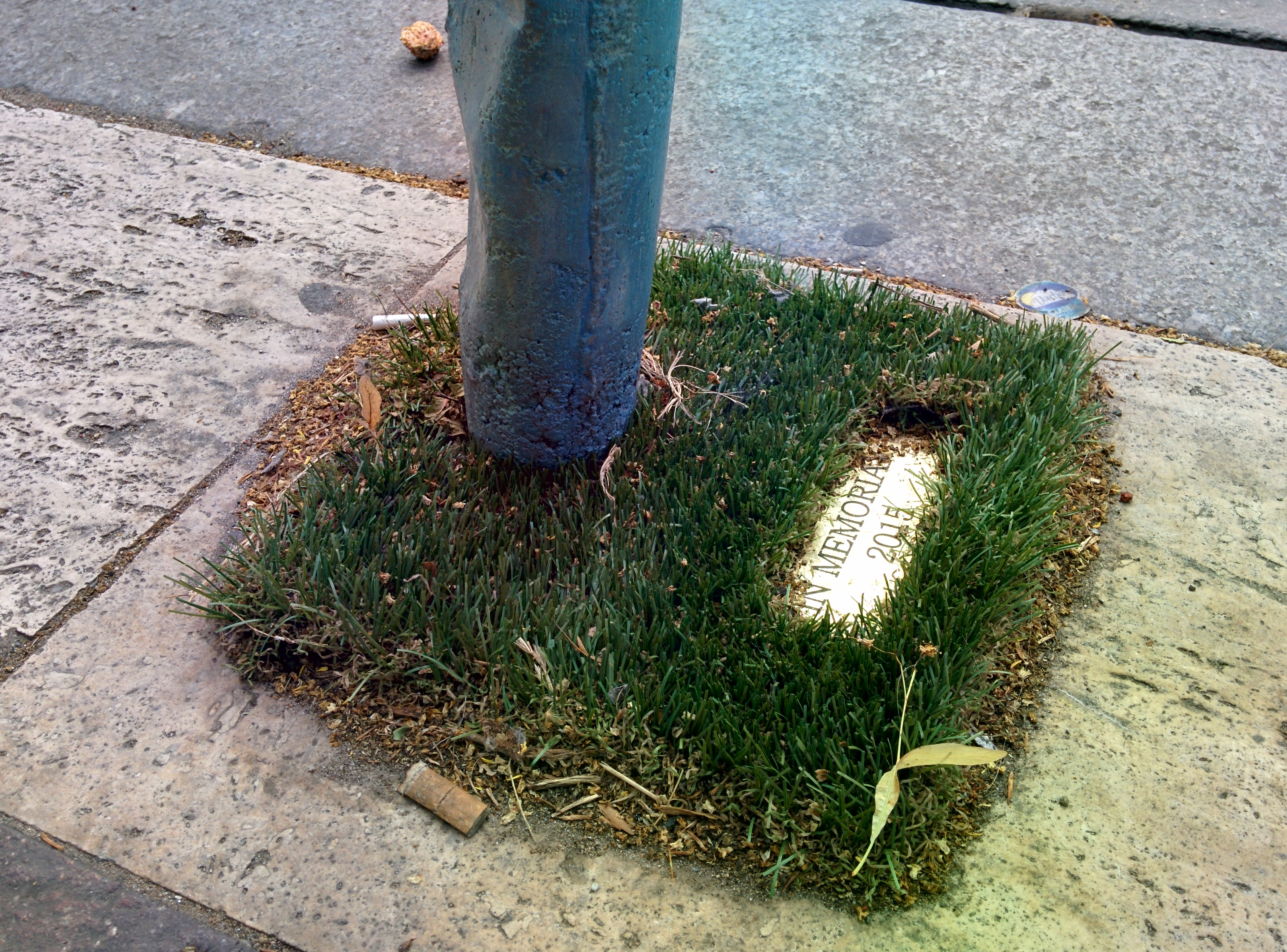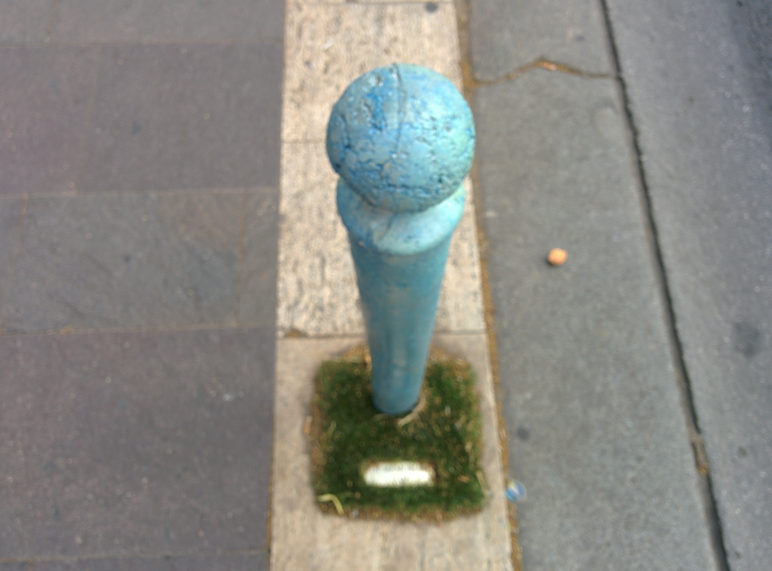 A Bazilika mögötti zebránál a Bajcsy-Zsilinszky úton belefutottunk egy betonpollerbe, azaz a fém parkolásgátló “Demszky-karókhoz” nagyon hasonló tárgyba. A pollert egy hiányzó helyére állította be valaki, és a tövét fűvel telepítette be. Budapesten egyébként ezeket a karókat szokták rendszeresen kidönteni, vagy a bicikliút közepén elhelyezni.